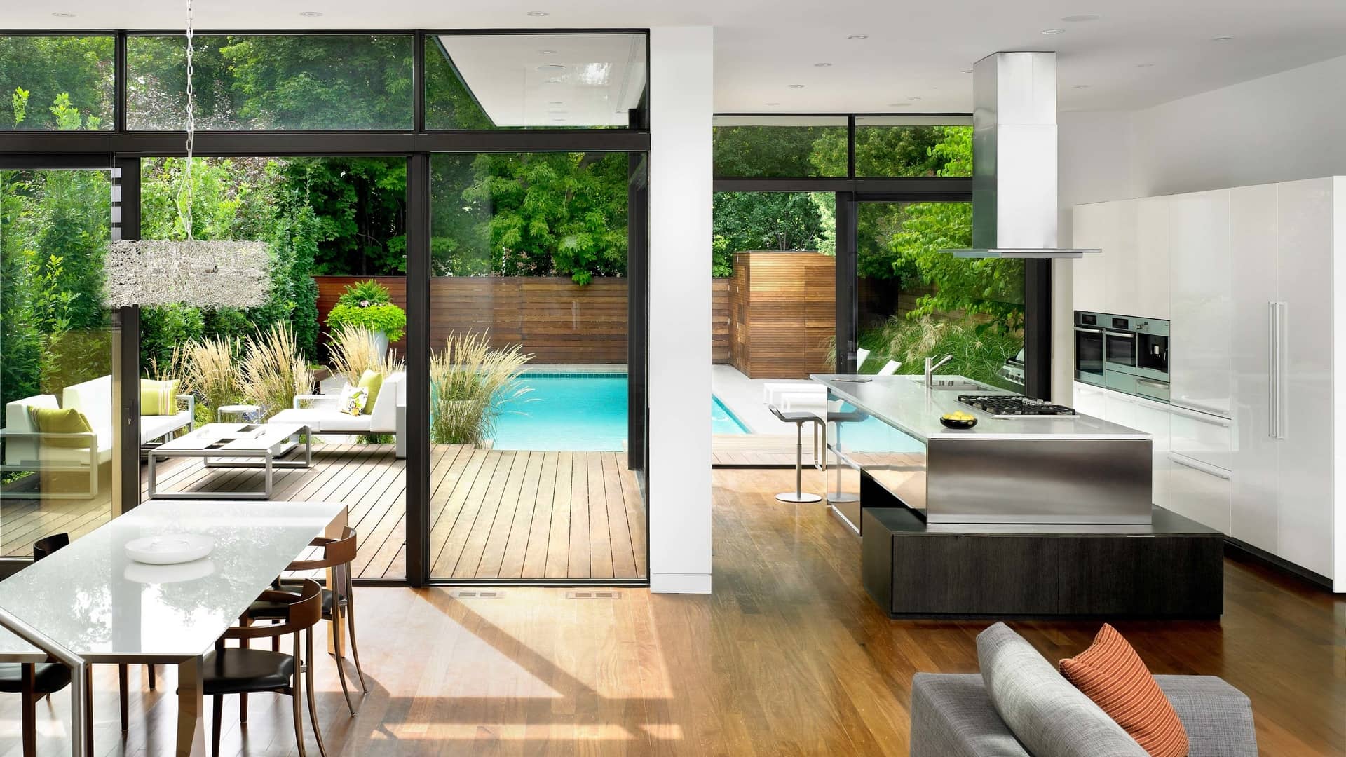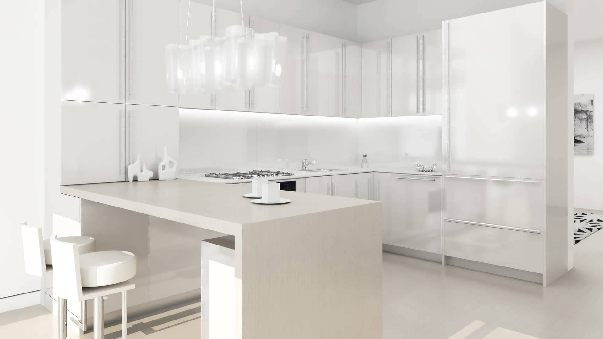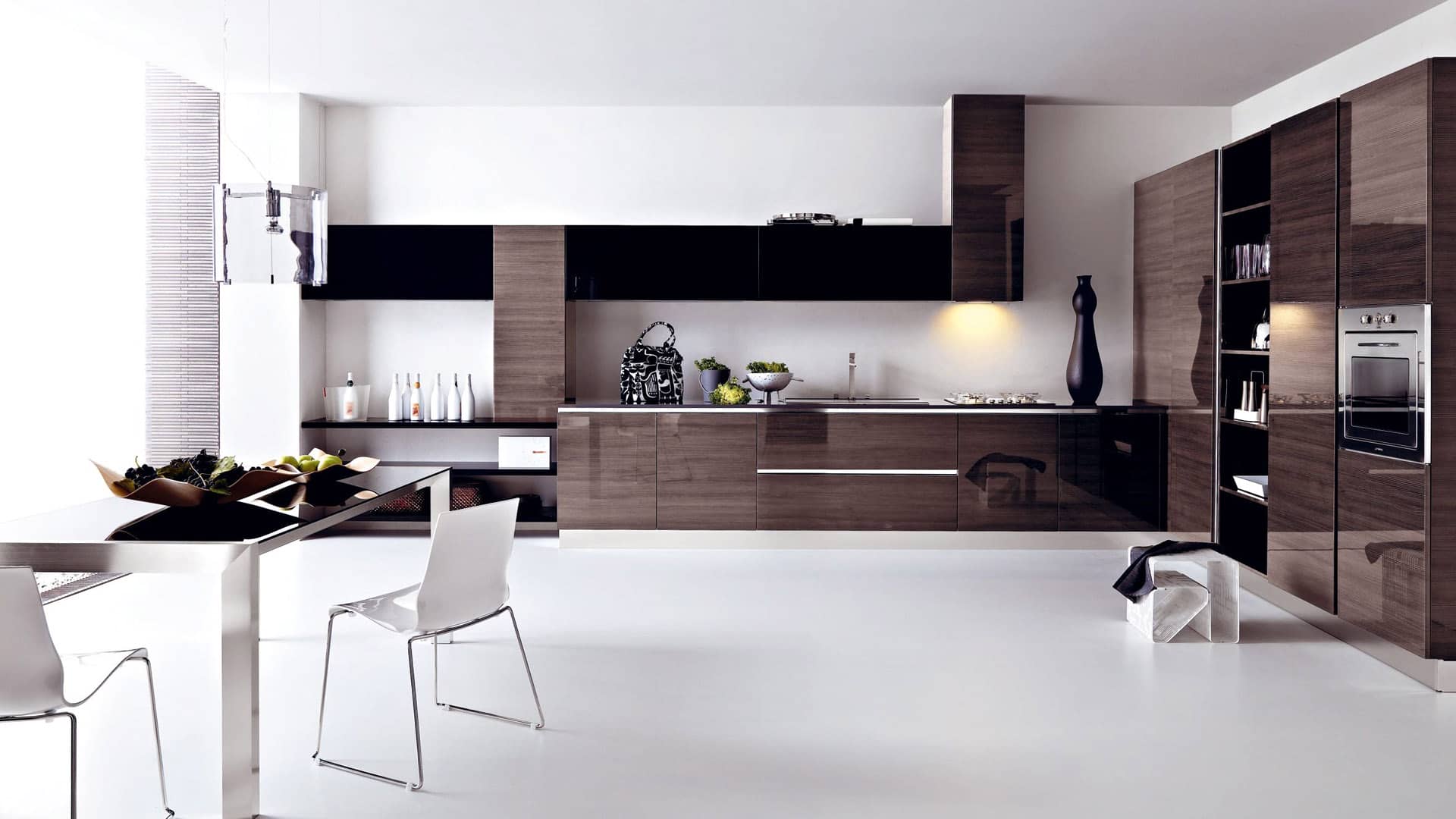 Last but not the least; you can try this old and new mixture of wallpapers in your kitchen. It would give your kitchen a traditional look. You can do so by dividing your kitchen in sections by deciding which section will be decorated as new and which is going to give a traditional look. It would be a combine of classic modern kitchen. Use under mount basin, white cabinets and glass slabs for it.