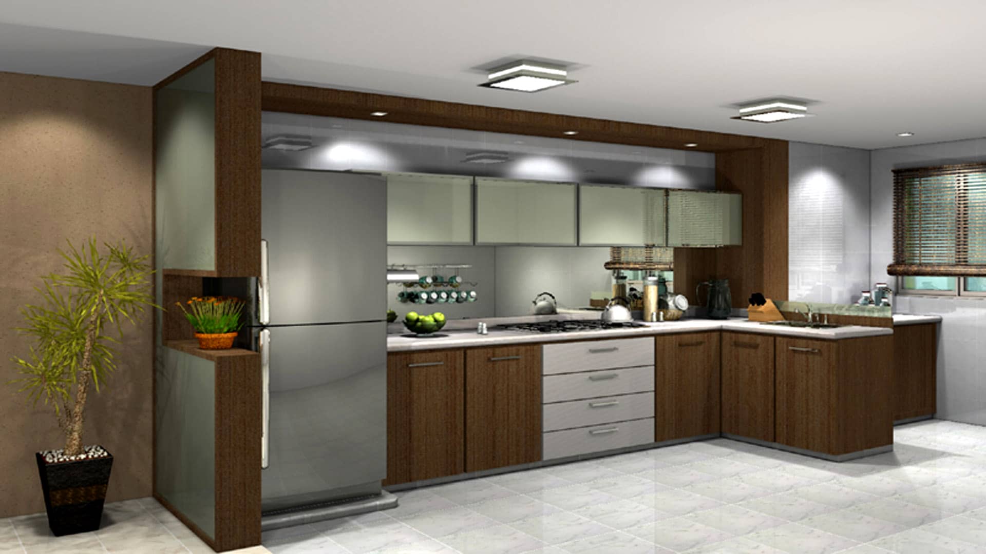 You can select a colour pattern for your kitchen which matches with the rest of your house. Or else you can bring a whole new idea for your kitchen by using different wallpaper themes. If you select a colour and apply it all over your kitchen, it would give your kitchen a charming look as well as it would enhance the exquisiteness of your kitchen. Most popular colours used in kitchen wallpapers are cream, grey, brown etc.