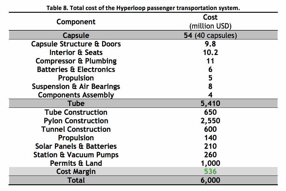 His ultimate aim is to connect the far-flung American cities with a supersonic system that will also be cheaper and safer than the current modes of travel. In this way, different parts of the American culture will be brought closer and thus we will be able to reshape the entire continent. We understand that the project is going to be expensive as shown in the table below. A link between San Francisco and Los Angeles will cost around six billion dollars in a very relaxed estimate. Even then, it will cost ten times more than the high-speed railroad project in California. However, technical experts of transportation believe that he is underestimating the costs and this kind of system will be very expensive to build and maintain.