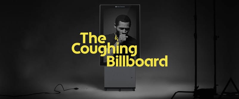 The location of this billboard is at the very busy Odengatan Plaza in New Stockholm. Every time a smoker passes by the billboard, the man on the advertisement coughs with annoyance and disgust. The technology is pretty simple, a smoke detector to recognize the presence of a lit cigarette. The ad then continues to show a selection of anti-smoking products offered by the pharmacy chain.