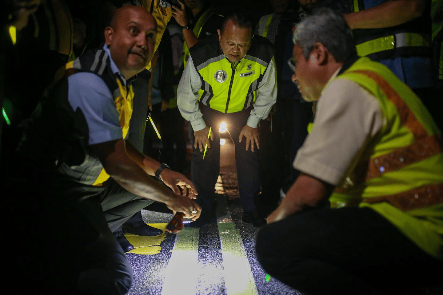 During a site inspection, Works Minister Alexander Nanta Linggi praised the paint’s visibility, especially under adverse conditions, noting it could be a cost-effective alternative in remote or low-income regions.