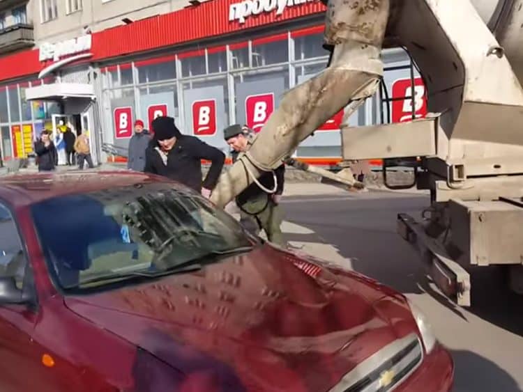 The video shows the man directing a cement truck backing towards a car. He then positioned the chute through the car’s window and motioned the directed to fill up the car. The video showing the act went viral soon beyond Russia, leaving people in wonder and shock.