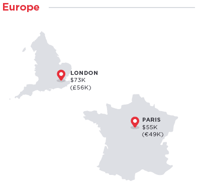 Hired received 280,000 interview requests and job offers from more than 5,000 companies to 45,000 job seekers. Based on this data, the company’s data team determined the average salary for a software engineer in the San Fransisco Bay Area which is $134,000 a year. In any other place in the country, software engineers do not get paid as much. Seattle, however, is close to San Fransisco with an average of $126,000. Boston, Austin, L.A, New York, and Washington D.C are considered to be the tech hubs of the country where a software engineer’s salary ranges between $110,000 and $120,000.