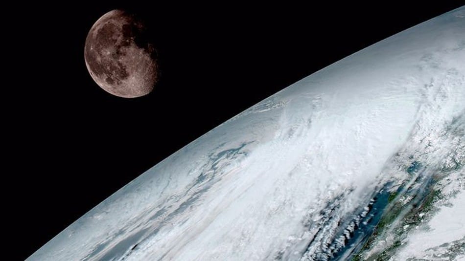 The collage includes a particularly stunning picture of the moon peeking out of our blue planet covered by thick clouds. Besides the appealing visual intrigue, the picture of the moon and Earth shining together also helps the scientists to calibrate the new spacecraft’s camera.