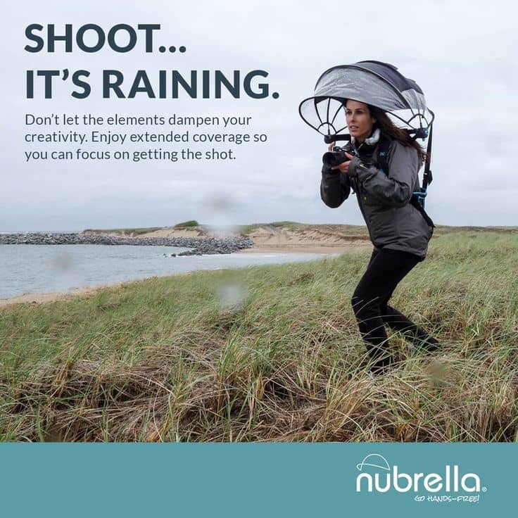 If you are a photographer, either professional or immature, you must have a love-hate relationship with rain. You would not want to miss out on a moment just because it is raining and you can not afford to get even a drop on your valuable equipment. Using an umbrella messes with you dealing the camera and the moment evaporates as if it was never there. Nubrella created an innovative hands-free umbrella that will let you take pictures in the rain, keeping you and your camera dry.