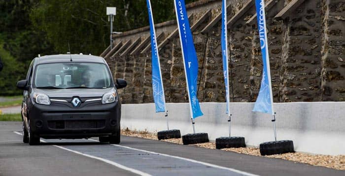 Qualcomm demonstrated the system in France this Friday, using the technology built in collaboration with VEDECOM at Satory Versailles at the 100m test track powered by two Renault Kangoo Z.E. vehicles bearing the charging receivers. The test is part of FABRIC, a €9 million project, funded by the European Commission and aimed at testing the technological feasibility, socio-environmental sustainability and economic viability of the wireless DEVC.