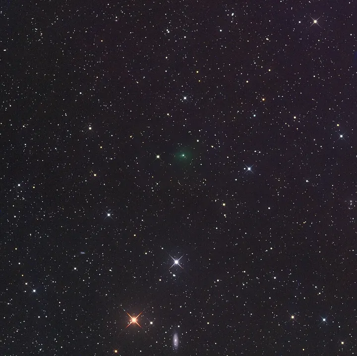 Deep imaging of the glow around 3I/ATLAS on September 7, 2025 displays a green color. (Credit: M. Jäger and Gerlad Rhemann)
