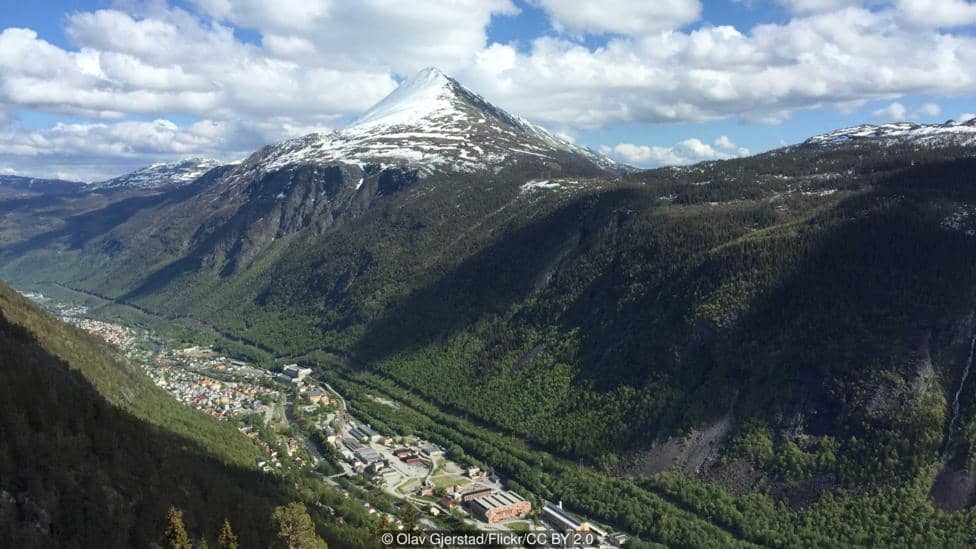 Rjukan is a small dark town that sits between two mountains in Southern Norway. Located deep in Vestfjord valley in Telemark, surrounded by steep mountains, the town does not get any sun from September to March.