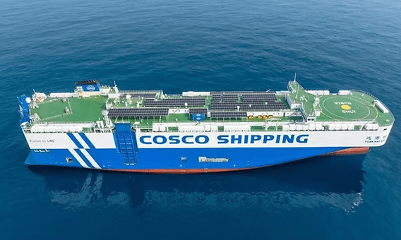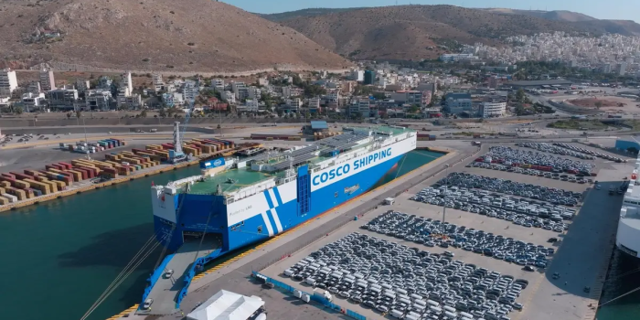 Yuanhai Kou, the world’s largest solar-powered vehicle carrier, has completed its maiden voyage, docking at Greece’s Piraeus Port with 4,000 Chinese-made cars aboard.